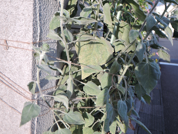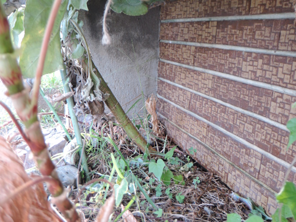 茎の根元の場所が花壇の奥で、そこから曲がりながら2メートルを超えるまでに成長しているので、通常よりは安定感がありません。