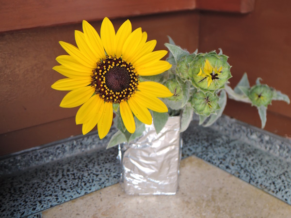 ヒマワリは結構虫が付いているのでそれらを落とし防虫スプレーを掛けてはいますが、今のところは玄関に飾る予定です。