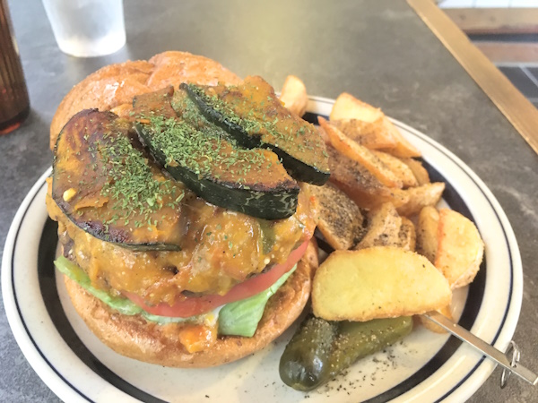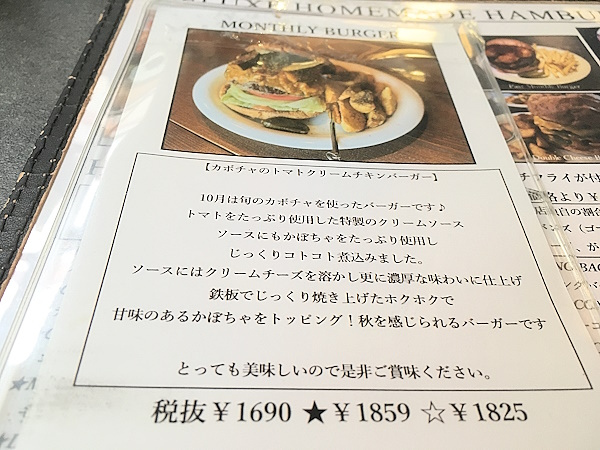 丸岡町にあるハンバーガーショップ「キングスエイトダイナー」さん10月のマンスリーは【カボチャのトマトクリームチキンバーガー】。