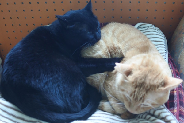 同室の、同じく里親さん募集中の茶ボスと黒ボス。