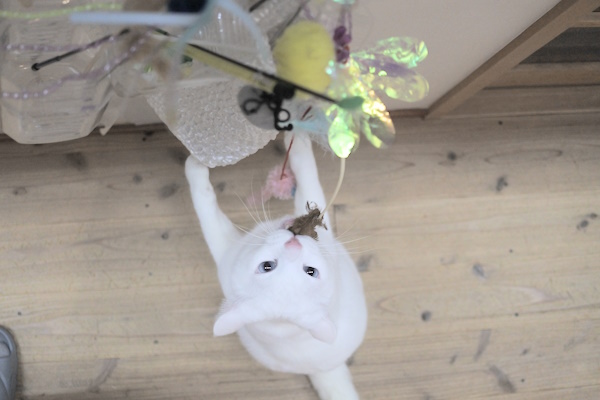 今までは壁に掛けてあるおもちゃを取るために立ちあがった瞬間を撮影していましたが、この日は上から撮影出来ました。