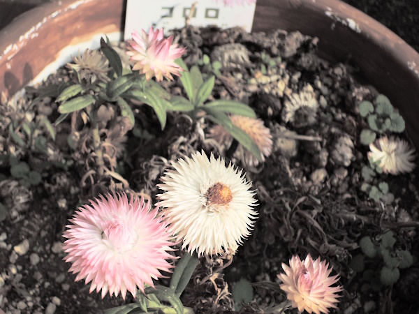 昨年7月に鉢に植えたコロロジャンボはモコモコにはなりませんでしたけれど、まだ花を咲かせます。