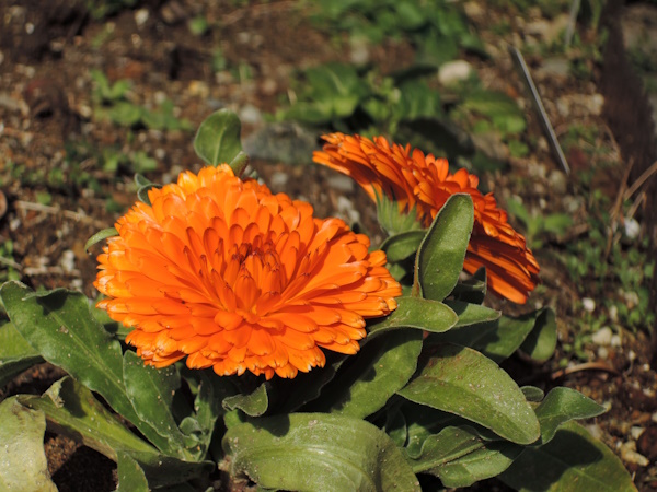 東側には夏から初冬にかけて定番だったマリーゴールドが昨年は枯れてしまったので、キンセンカを植えました。