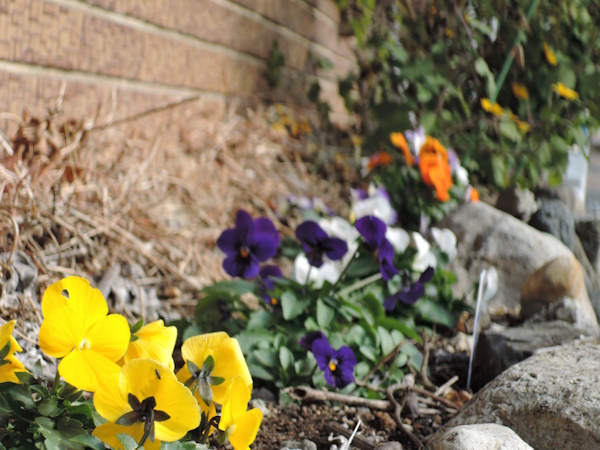 並びにはパンジーを植えていますが、雨雪にさらされて花は萎れている時が多いです。