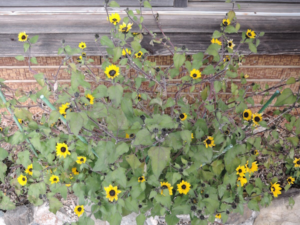 当院の花壇に25年7月に植えた多花性ヒマワリ「アポロン」は、まだ咲き続けています。