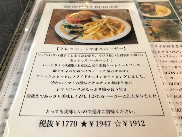 1月のマンスリーは「フレッシュトマオニバーガー」。