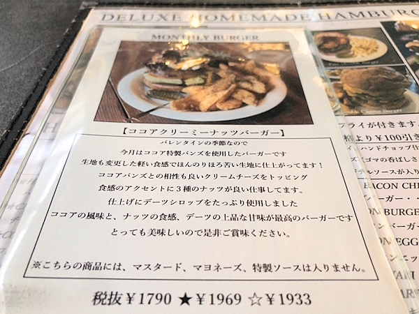 今月のマンスリーバーガーは「ココアクリーミーナッツバーガー」。
