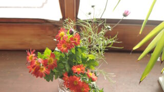いただきました 切り花をいただきました 今年は地区の区長をしています。区長の仕事で地区を回っていた時に、ご近所さんから切り花をいただきました。コスモスとキク科のなにか、です。有難うございます、感謝いたします。 2025.12.10 いただきました花、植物