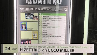 何年かぶりに大阪まで行ってきました。初めて梅田クラブクアトロ行ってきました。「H ZETTRIO with YUCCO MILLER 〜祝Release “DAZZLING NIGHT”〜」H ZETTRIOさんのライブは、昨年・今年と鯖江...
